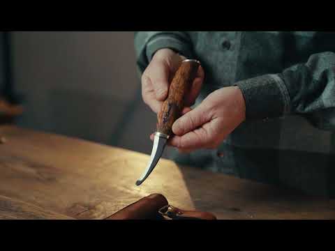 Our products are made from the finest natural materials and raw materials that follow the highest ethical standards. High-quality carbon steel, Finnish curly birch and Finnish natural tanned leather form the basis of all our products. Our locally produced, organic and ethical leather comes from free animals and has been vegetable tanned where only organic material is used instead of destructive chemicals.
